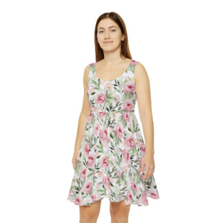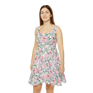 Boho High Waist Pink Blush Peony Floral Summer Skater Dress Cute