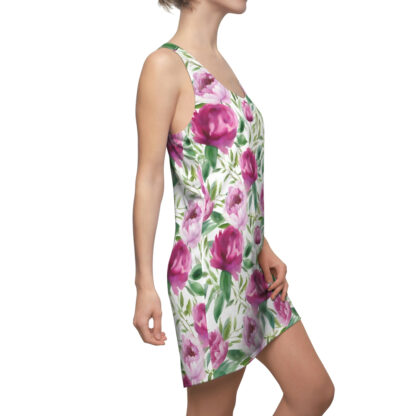 Made from 100% polyester, this dress is lightweight and comfortable to wear. The light fabric of 6.0 oz/yd² (170 g/m²) feels soft on the skin, and the white seam thread adds a nice contrast to the colorful floral pattern. The dress is tagless for added comfort and has a sporty fit that runs true to size.