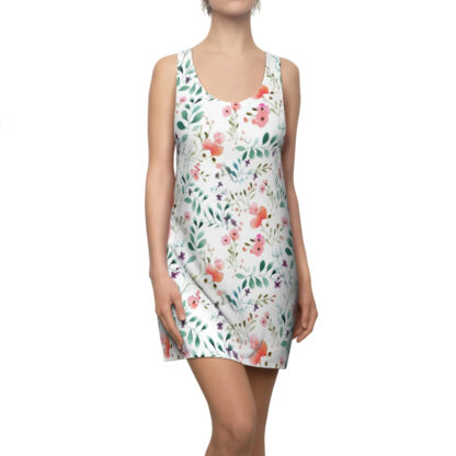 This Boho Racerback Summer Dress with Pink and Orange Wild Flowers Floral pattern design is perfect for those who love effortless style and comfort. Made from 100% polyester, the light fabric (6.0 oz/yd² or 170 g/m²) will keep you cool and comfortable on warm summer days.
